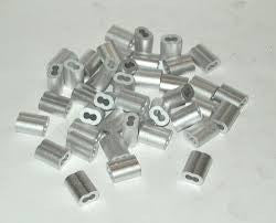 Aluminum Double Ferrules can be crimped or hammered on and are available for 3/64 1/16", 5/64", 3/32" and 1/8" cable.