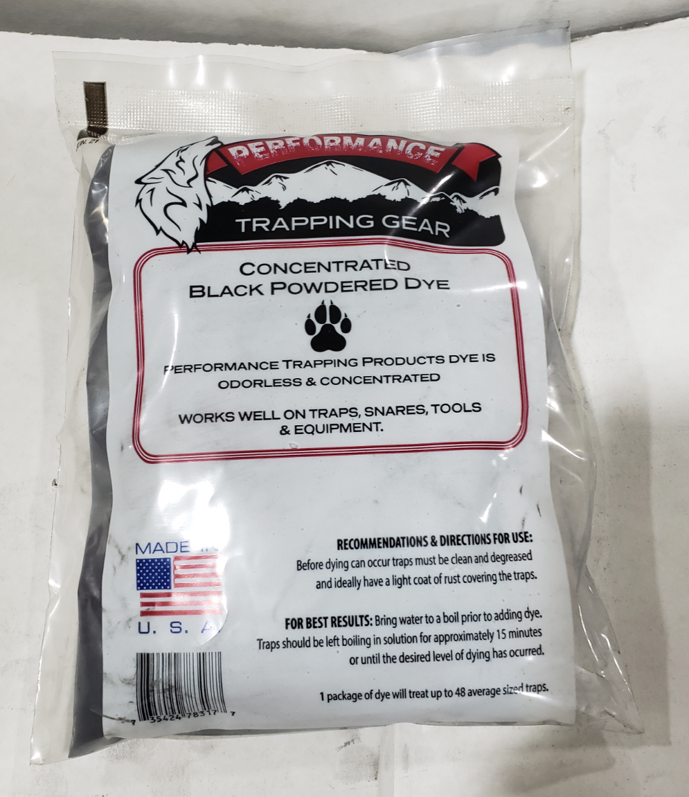 Our black trap dye is odorless and will help protect and conceal your traps.