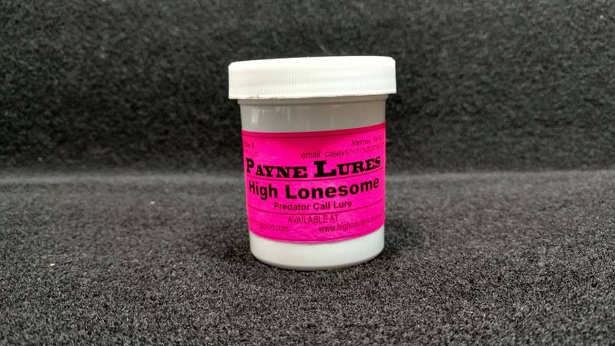 HIGH LONESOME: This is Casey's favorite lure! A food based call lure that brings in Fox, Coyotes and Coons. A fur producer, fall through winter, in any climate.