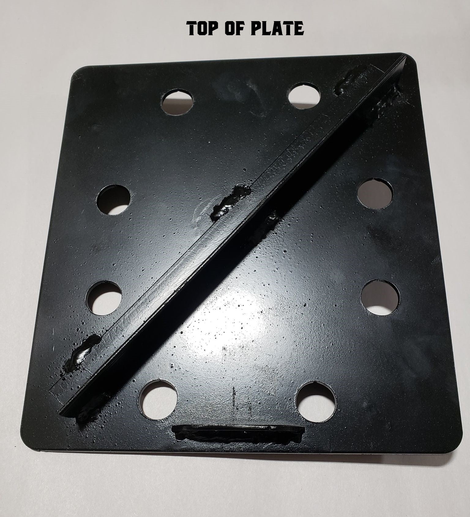 2. REINFORCED THE STOCK REINFORCED PLATE IS A SOLID PLATE MEASURING 1/8 THICK AND IS ENHANCED ALONG THE TOP AND BOTTOM. THE SOLID PLATE WORKS JUST LIKE THE ORIGINAL STOCK PLATE BUT CONTAINS THE ADDED BENEFIT OF THE REINFORCED ANGLE IRON ON BOTH THE FRONT AND BACK IN AN X PATTERN. THIS REINFORCEMENT WILL HELP WITH WARPING OF THE PLATE