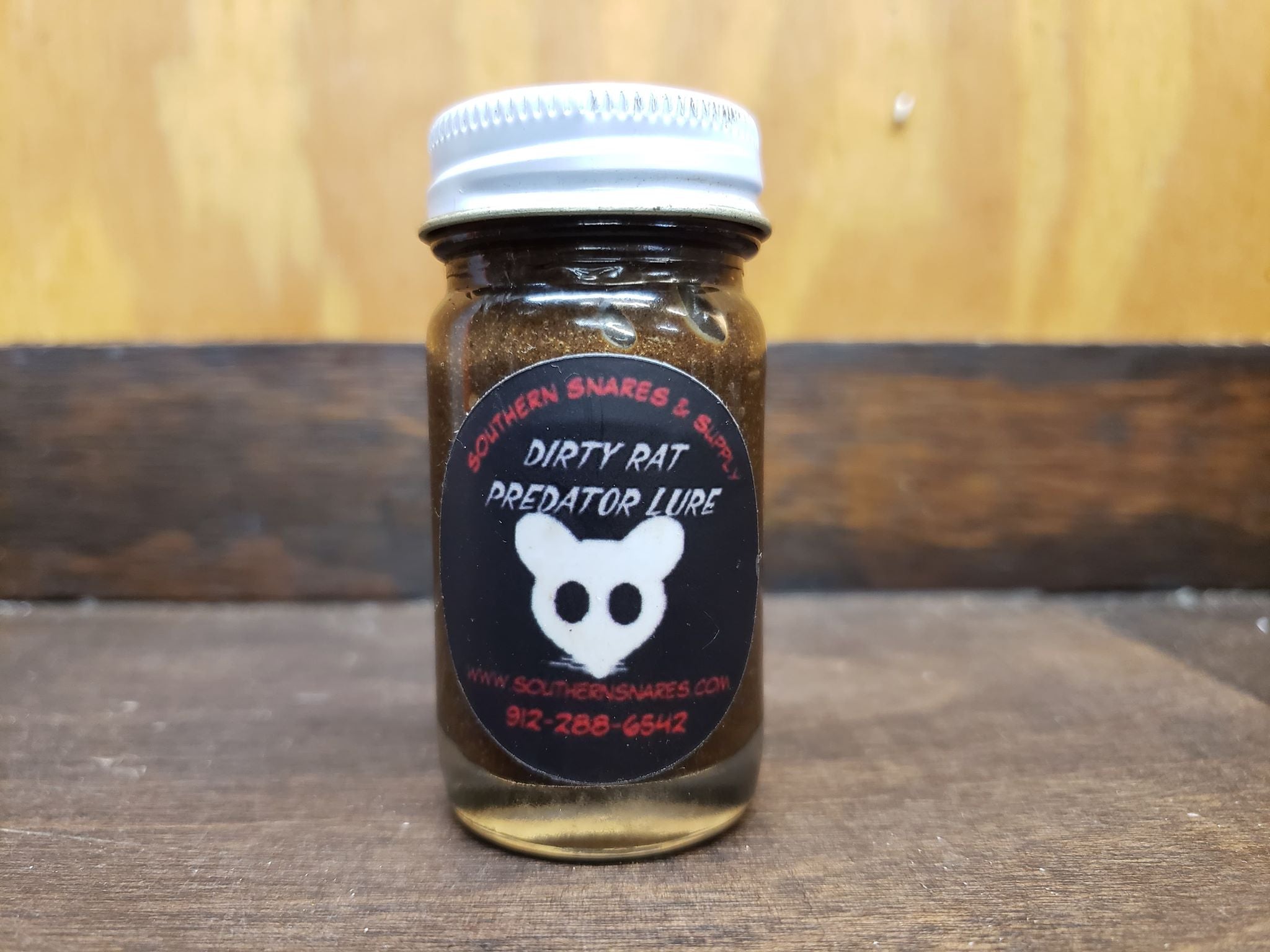 DIRTY RAT IS A COMBINATION OF POWERFUL STIMULATING INGREDIENTS THAT CAUSE THE K-9'S TO WANT TO DIG FOR THIS LURE. IN FACT WE HAVE SEEN OVER THE LAST SEVERAL YEARS, SETS ABSOLUTELY DESTROYED FROM THE COYOTES TRYING TO GET TO IT.