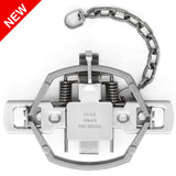 The Duke Pro Series 550 OS features heavy cast steel jaws, stainless steel rod dog with step down PIT pan system, double base plate, center swiveled D-Ring with machine link chain & in-line swivel. Designed for serious coyote trapping, this trap is built rock solid to withstand the toughest conditions out there.