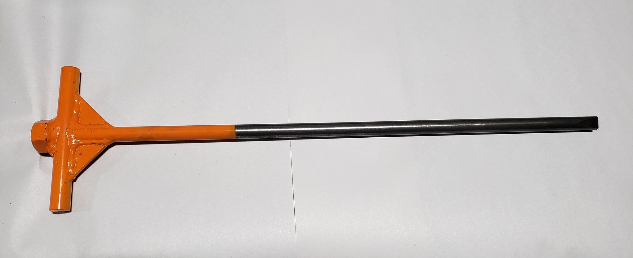 PERFORMANCE TRAPPING GEAR'S HEAVY DUTY DRIVER MADE FOR THE WOLF FANG EARTH ANCHOR IS MADE FROM PREMIUM AND MORE RIDGED STEEL AND DESIGNED TO LAST LONGER THAN THE ORIGINAL HEAVY DUTY DRIVERS THAT ARE AVAILABLE ON THE MARKET. THE "T" HANDLE ADDS EXTRA LEVERAGE AND HELPS WITH PULLING THE DRIVER BACK OUT. COMES IN BRIGHT ORANGE SO ITS HARDER TO FORGET IT AT THE TRAP SIGHT OR LOOSE IT.
