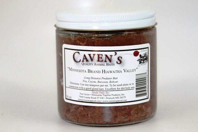 Caven's Minnesota Valley Predator Bait has the same ingredients as the very popular Hiawatha Valley bait, but is custom made for the flat set. This bait is the real ticket for early season dirt holes and pre-season baiting. As with Hiawatha Valley, use alone or in conjunction with a good gland lure. This is a great bait for red fox, grey fox, coyote and coon.