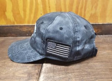 Adjustable Velcro back allows this hat to fit all. American flag on the left side.