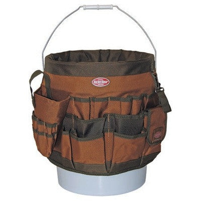 THIS TRAPPERS BUCKET ORGANIZER IS MADE OF TOUGH 600d POLY RIP STOP FABRIC. MADE WITH 30 STORAGE POCKETS, 22 OUTSIDE AND 8 INSIDE, PLENTY OF SPACE TO PUT YOUR LURES AND BAITS AND OTHER MISC TRAPPING TOOLS AND SUPPLIES AND WILL FIT ANY 5 GALLON BUCKET. ALSO HAS 3 INTERIOR LOOPS FOR LARGER ITEMS LIKE YOU SPADE, HAMMER OR DRIVER. AVAILABLE IN CAMO OR IN STANDARD